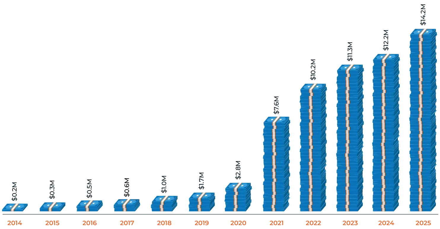Depending on what your financial goals are, maybe you should listen to me and maybe you shouldn’t. Regardless, I am not giving out advice anyway. All I do on this blog is share my own experience, and my real life examples. By doing so, my hope is to inspire and motivate you to create abundance in your own life, whatever that may mean to you. But if you want to see if what I have been doing is working, take a look at the financial summary below as of December 31st, 2025. Notice that I have been able to grow my family’s net worth from $42,424 to $14,186,716 (a gain of 33,440%).